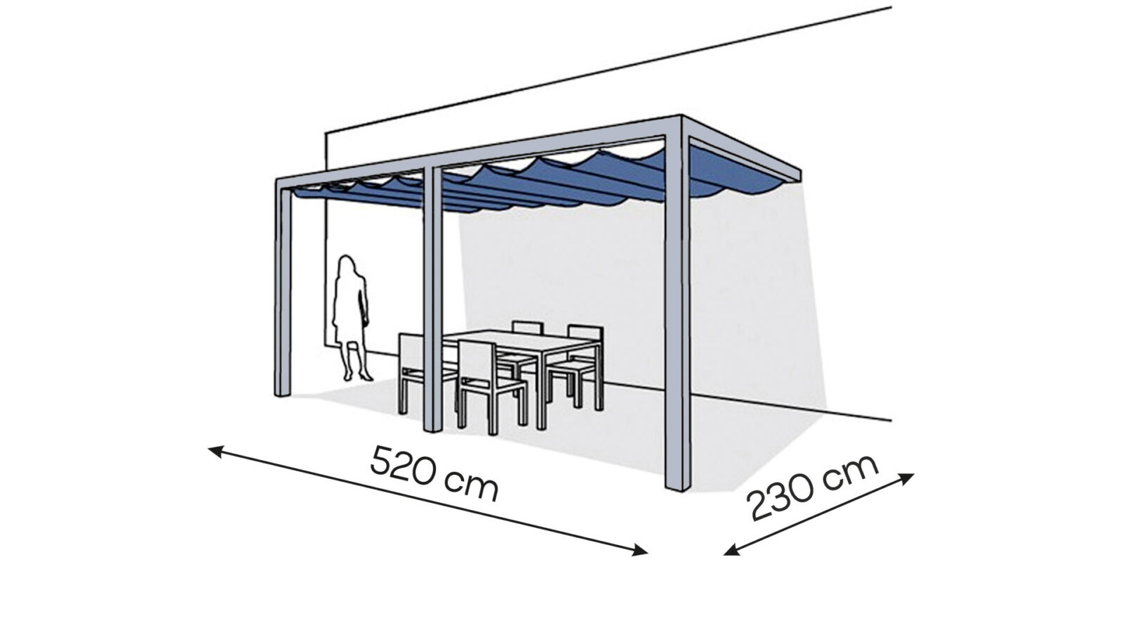 Pergola aluminiowa PW 230 x 520 cm – Srebrny