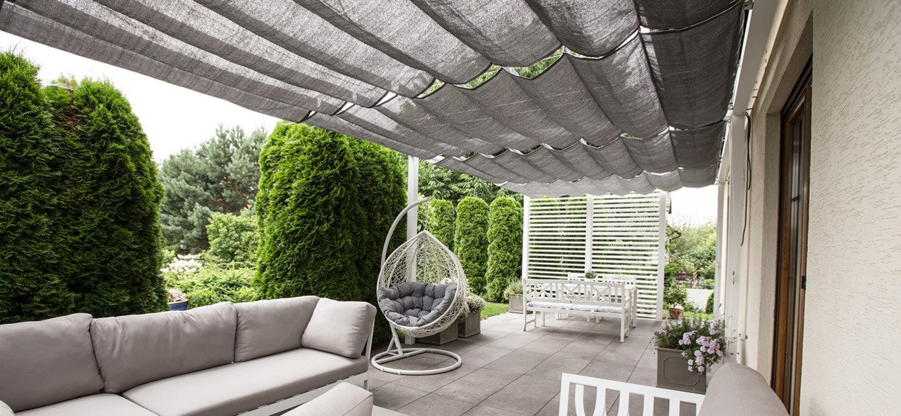 Roleta przeciwsłoneczna do pergoli aluminiowej, drewnianej lub własnej konstrukcji. HDPE 285 g/m², perforowana, odporna na pleśń, do 95% UV.