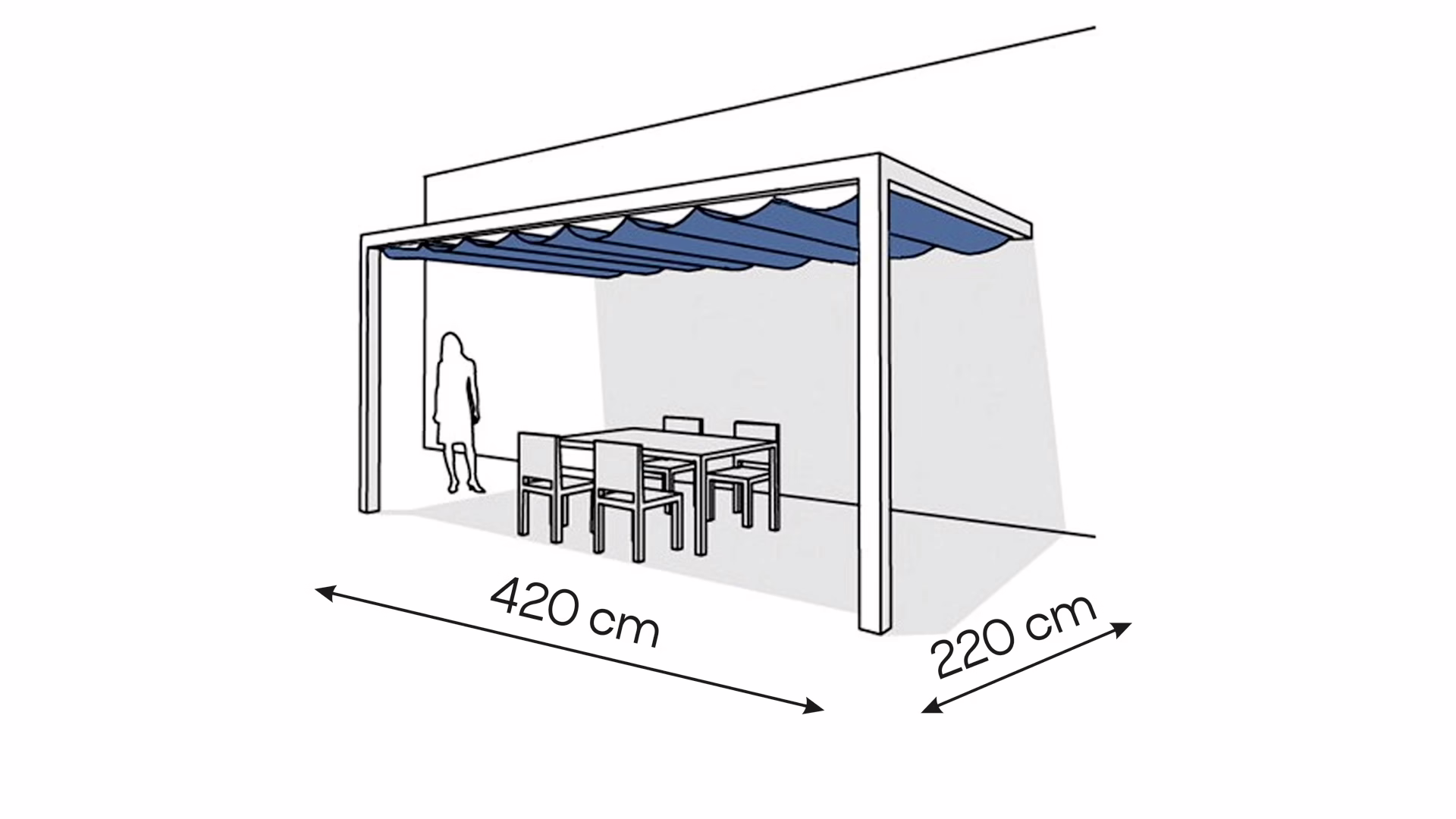 Pergola aluminiowa PW 230 x 420 cm – Srebrny – idealna do zacienienia tarasu lub ogrodu. Trzy różne rozmiary, wysoka jakość i stabilność.