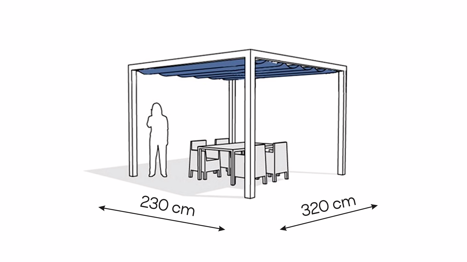 Pergola aluminiowa PW 230 x 320 cm – Biały – idealna do zacienienia tarasu lub ogrodu. Trzy różne rozmiary, wysoka jakość i stabilność.