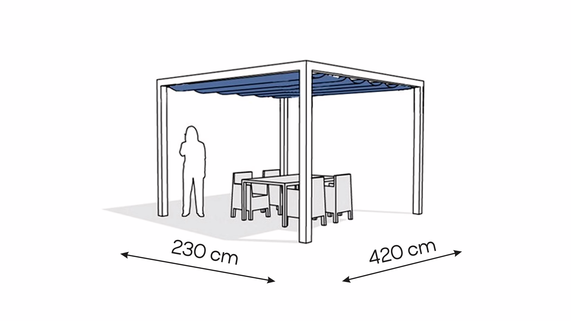 Pergola aluminiowa PW 230 x 420 cm – Biały – idealna do zacienienia tarasu lub ogrodu. Trzy różne rozmiary, wysoka jakość i stabilność.