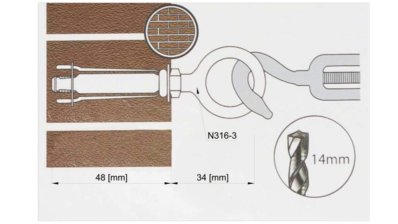 Kotwa ze śrubą wykonana ze stali nierdzewnej kwasoodpornej 316 jest przeznaczona jako element mocowania do ściany lub muru (beton, cegła, gazobeton i podobne).