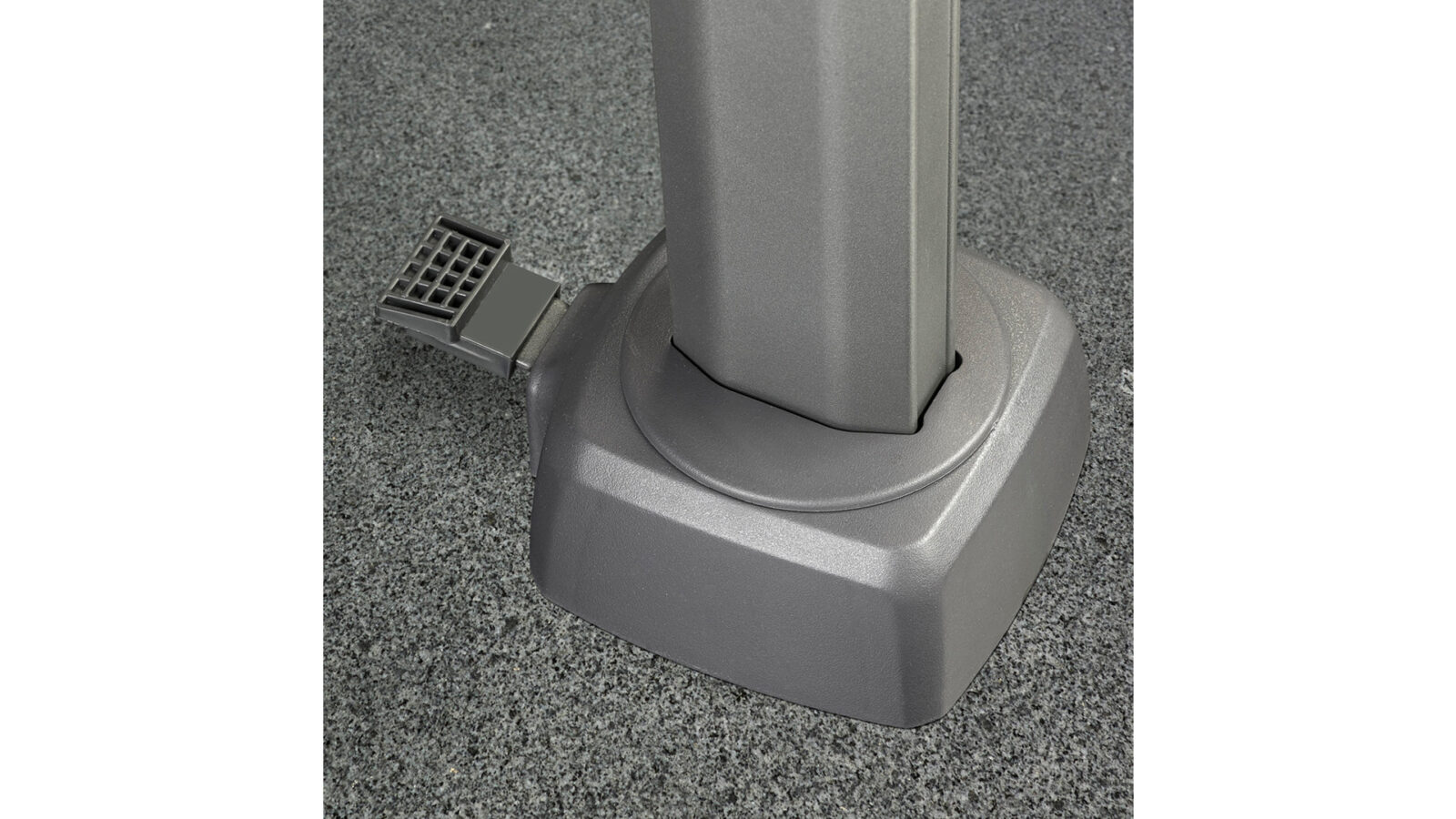 Parasol dostarczany jest bez podstawy. Do tego modelu zaleca się używać podstawy o minimalnej wadze 120 kg lub podstawy gruntowej XL, wpuszczanej do ziemi.
