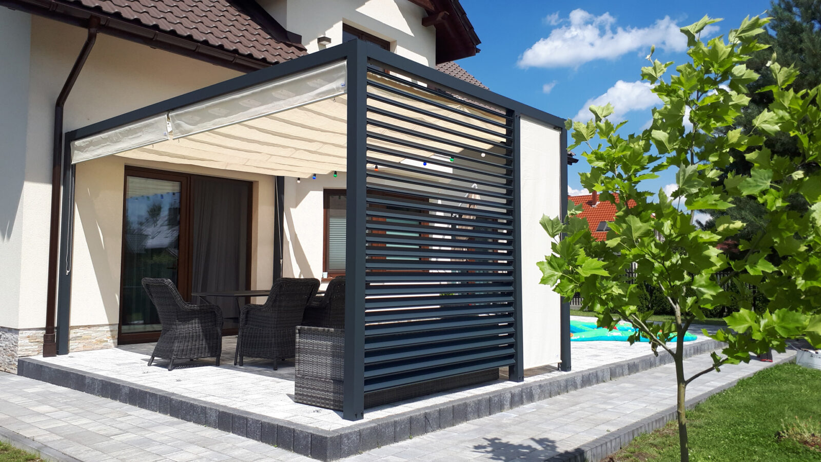 • Lamele ruchome aluminiowe na boczne ściany pergoli