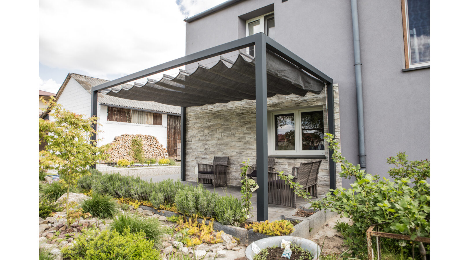 Pergola aluminiowa wraz z roletą poziomą rzymską Coolfit® lub roletą przeciwdeszczową Prosail® tworzy pełną konstrukcję zacieniająca strefę relaksu na tarasie lub w ogrodzie. Występuje w trzech wariantach konstrukcyjnych i różnych rozmiarach. Istnieje możliwość dopasowania pergoli do każdego wymiaru tarasu.