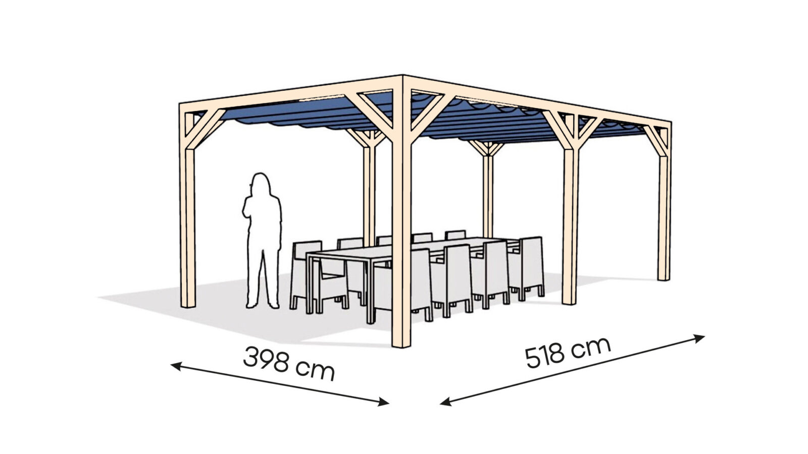 • wymiary zewnętrzne pergoli: 398 x 518 cm,