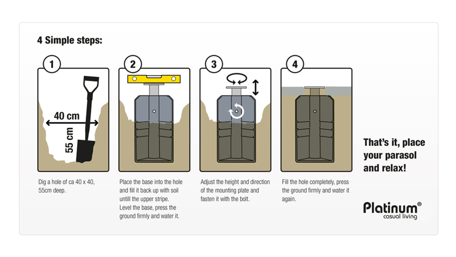 - Wymiar wykopu: 40 x 40 x 55 cm