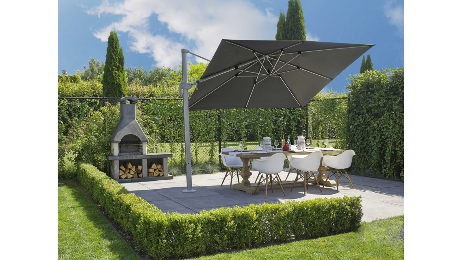- w celu uniknięcia przemieszczania się parasola po powierzchni na której stoi, w podstawach z kółkami należy zablokować kółka hamulcem, w które są wyposażone