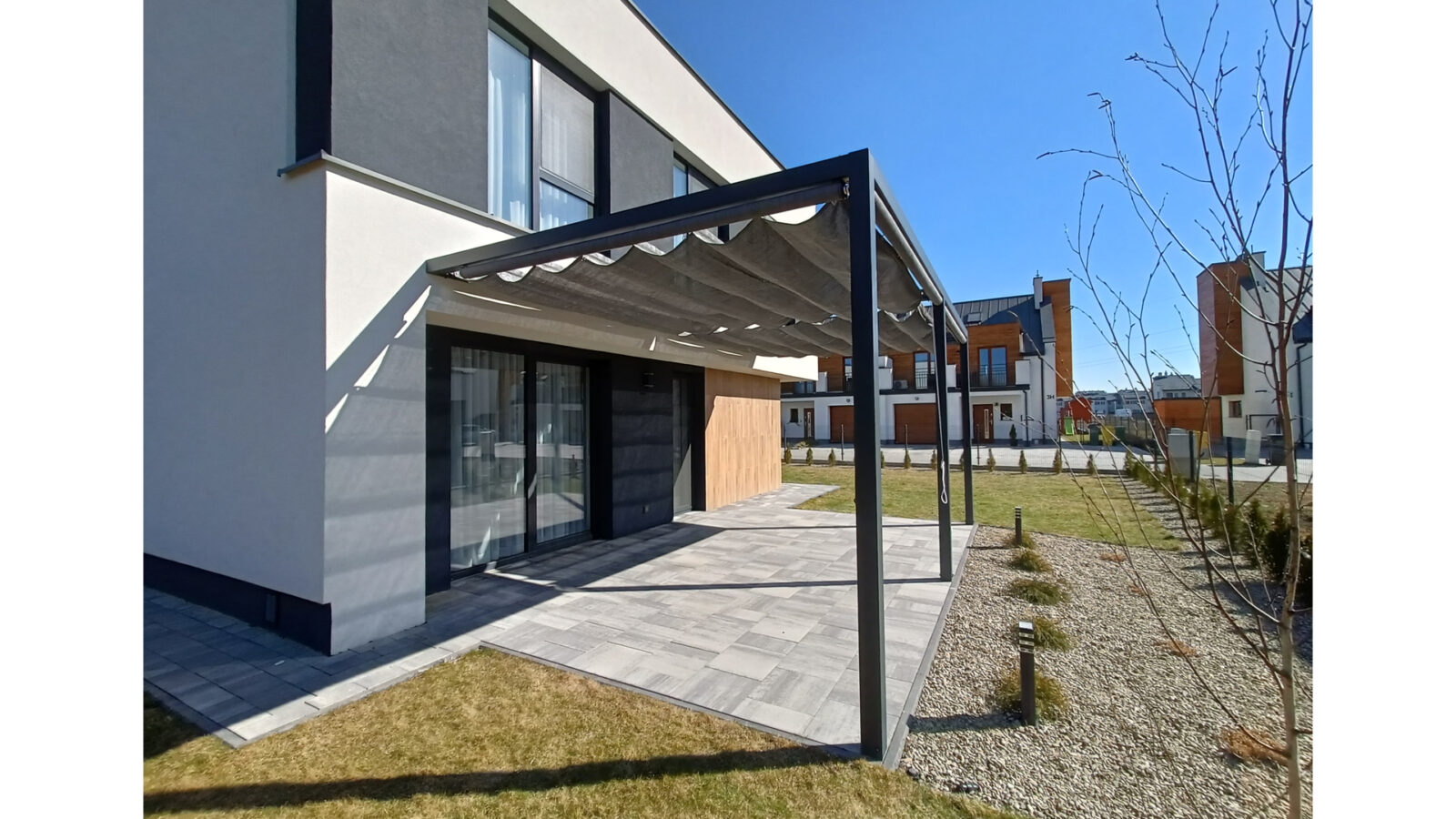Praktyczna, wytrzymała i zacieniająca roleta przeznaczona do montażu na pergoli aluminiowej, drewnianej lub własnej konstrukcji.