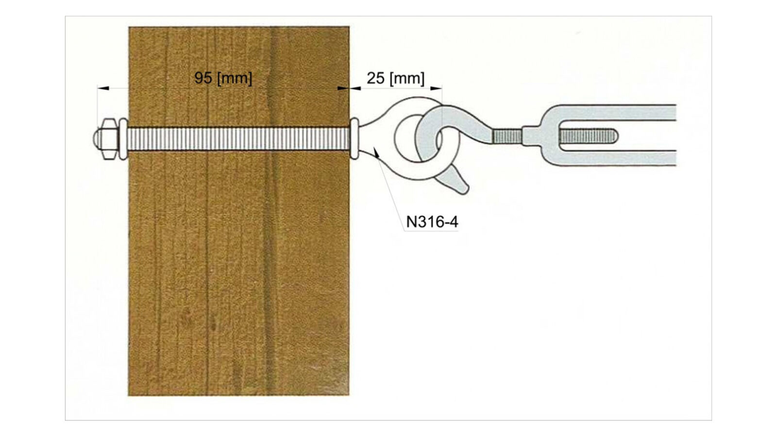 Do tak zamocowanej śruby można dopiąć śrubę rzymską M8 lub M10, która reguluje odległość między belką a żaglem i napina żagiel. Dopiero te elementy łączy się z okiem żagla.