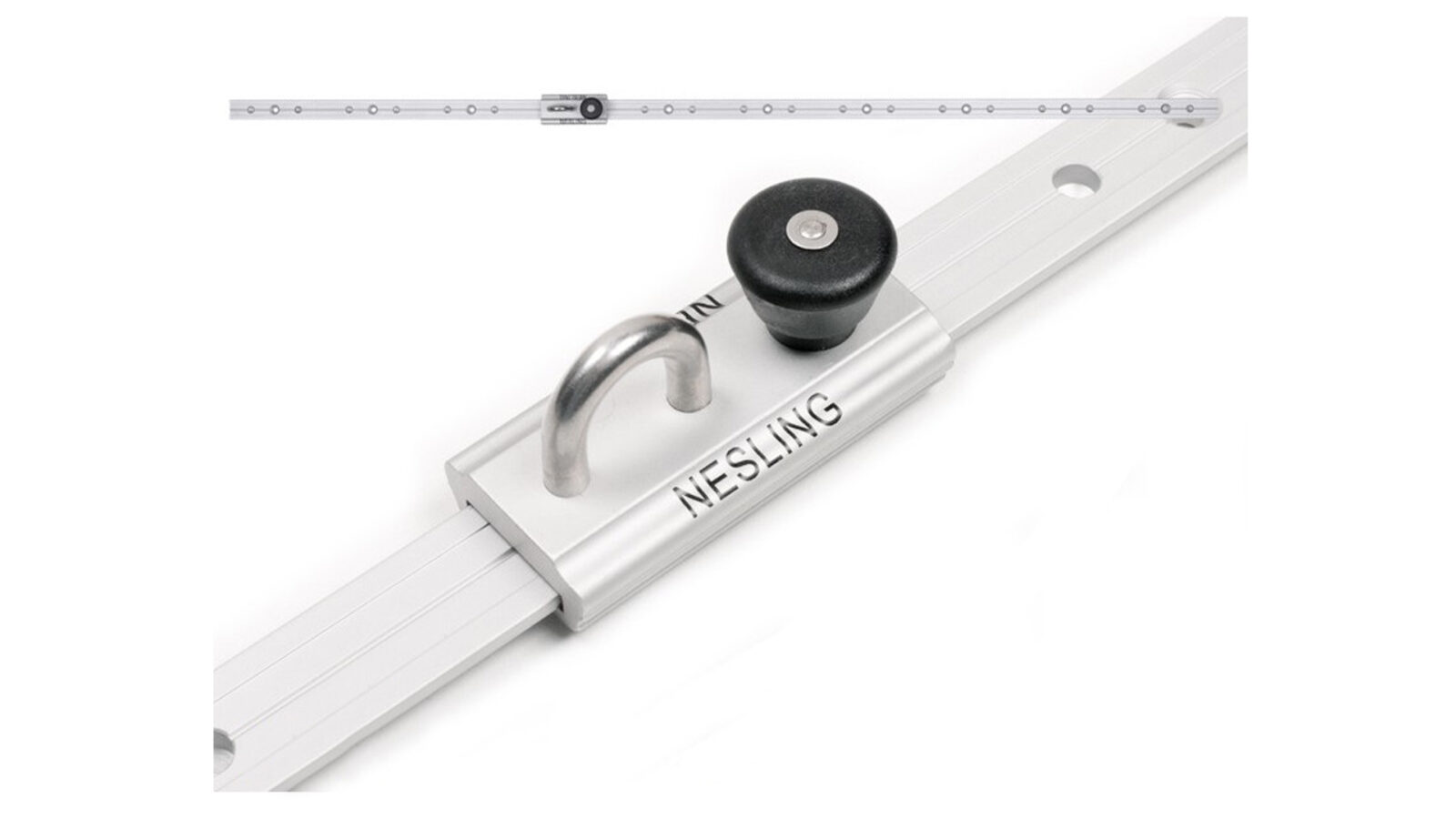 <h2>Aluminiowa szyna z wózkiem ma długość 1 m i można zamocować ją do drewnianej belki.</h2>