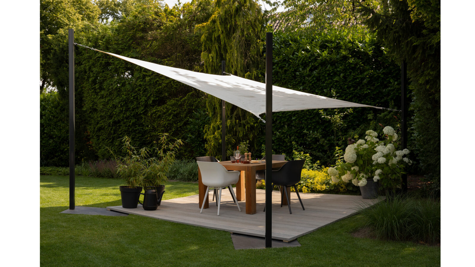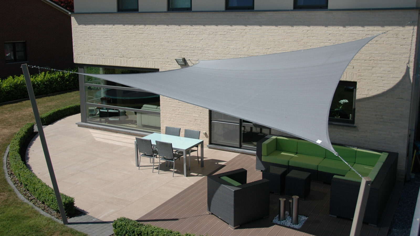 Nowoczesny i funkcjonalny żagiel przeznaczony do aranżacji strefy cienia na terenie prywatnych posesji. Może posłużyć także jako profesjonalne zadaszenie: nad placami zabaw dla dzieci, w hotelach, restauracjach, na basenach, termach i w marinach.