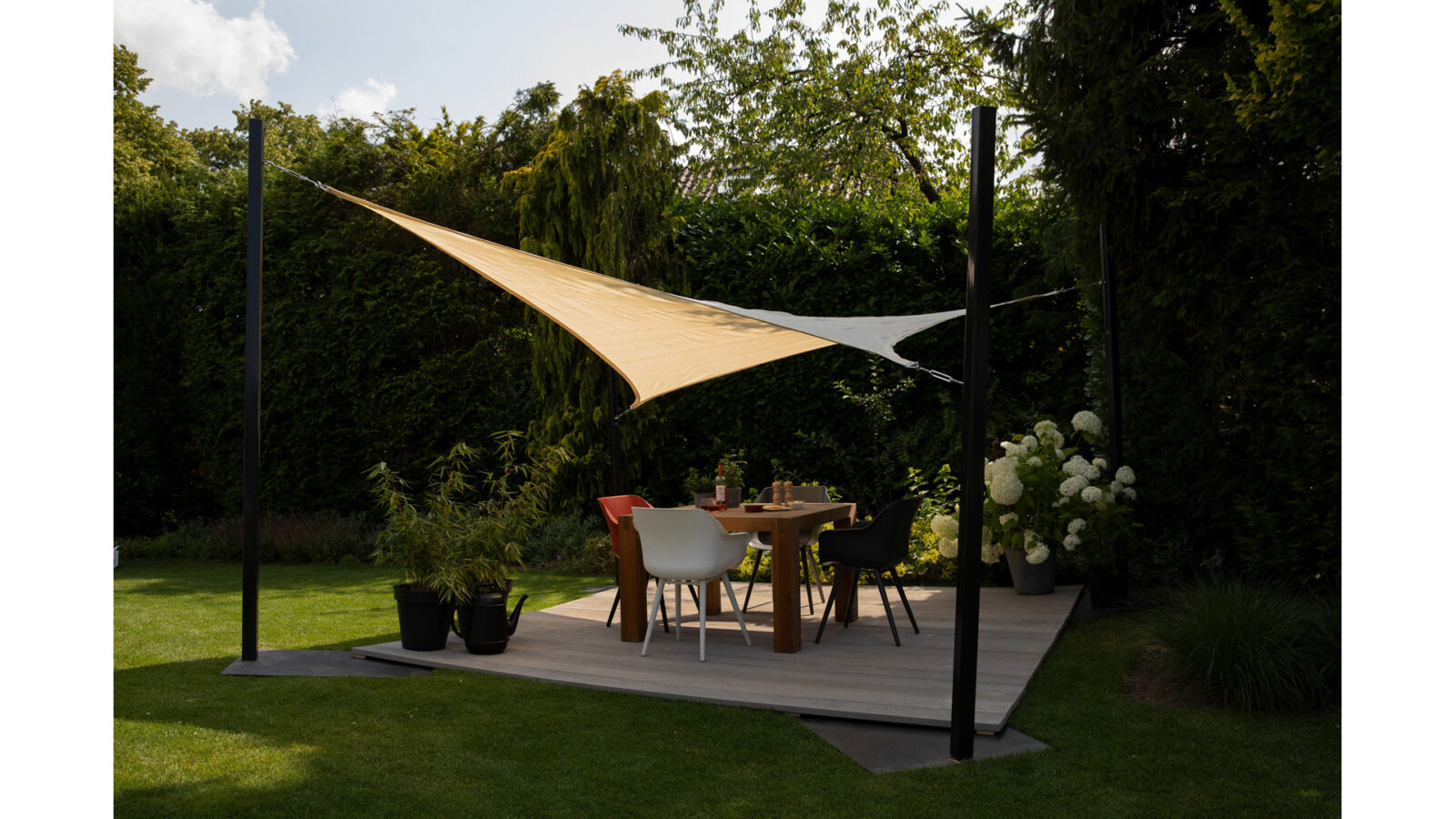 Nowoczesny i funkcjonalny żagiel przeznaczony do aranżacji strefy cienia na terenie prywatnych posesji. Może posłużyć także jako profesjonalne zadaszenie: nad placami zabaw dla dzieci, w hotelach, restauracjach, na basenach, termach i w marinach.